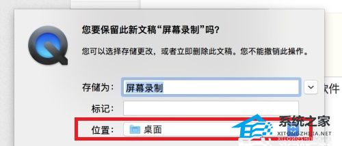 4、录制完成后,会自动弹出一个保存选项,在“位置”中就可以修改保存的文件位置了。