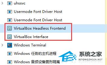 6、还有一些带有“virtualbox”字样的进程也要结束。