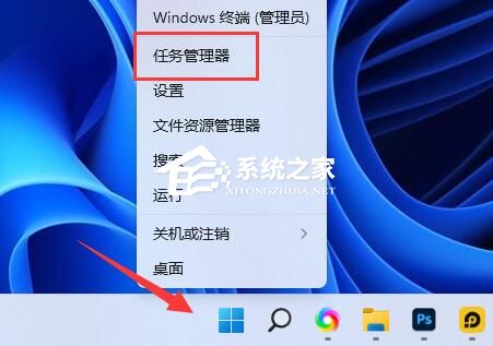 4、这时候可以右键开始菜单,打开“任务管理器”