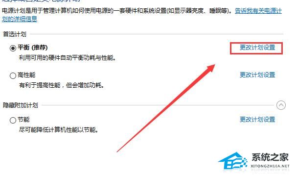 3、然后在你选择的电源计划后面,点击【更改计划设置】。