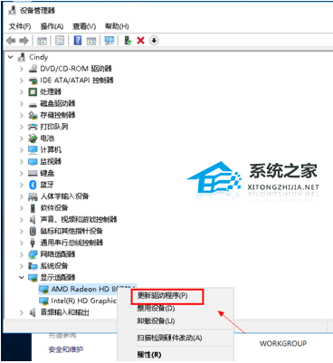 5、在显示适配器中有两个,那是因为有些电脑装的是双显卡,右键单击独显选择更新驱动程序。