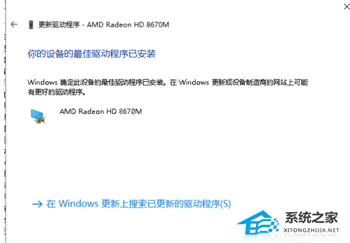 8、搜索到最新驱动后,系统自动替代安装,更新完成后如下图所示,你还可以用驱动精灵等第三方驱动更新工具更新显卡亦可。