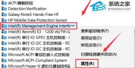 5、再右击“Intel(R) Management Engine Interface”选择属性。