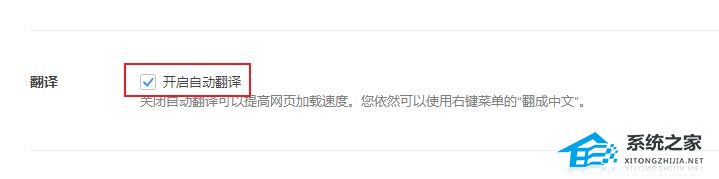 4、在高级设置的相关设置页面中将页面下拉,找到“翻译”这一项,点击将其勾选起来就可以了。