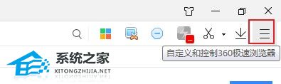 1、打开360极速浏览器,在浏览器右上角可以看到一个“自定义及控制360极速浏览器”的图标,点击该图标。