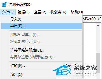 2、接下来我们会进入注册表编辑器。这里,为了保险起见,最好将注册表先导出保存一份,免得删掉一些重要的东西。