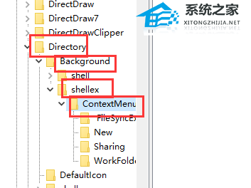 3、下面我们依次按照顺序点击左侧的注册表编辑器,进入HKEY_CLASSES_ROOT\Directory\Background\shellex\ContextMenuHandlers目录。