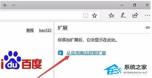 3、这时会打开扩展设置页面,点击其中的“从应用商店获取扩展”快捷链接。