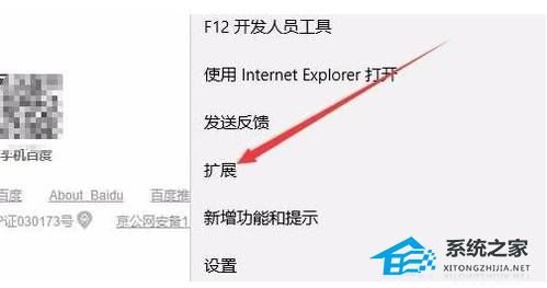 2、在打开的下拉菜单中点击“扩展”菜单项。