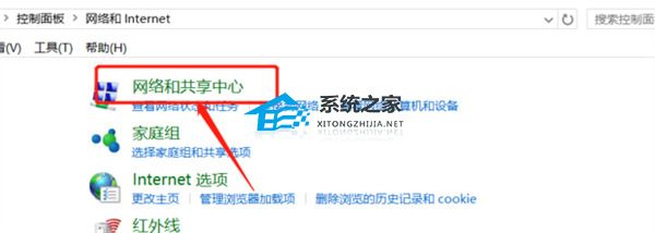 3、然后点击网络和共享中心。