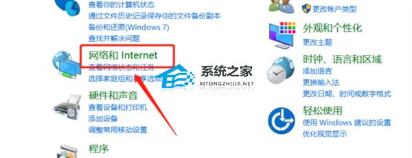 2、在控制面板中点击网络和internet选项。