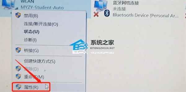 5、选择网络右击选择属性。