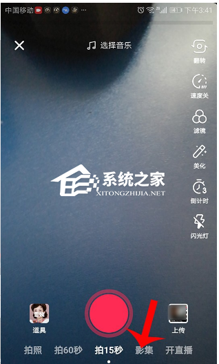 3、进入拍摄界面后,点击“影集”,如下图所示: