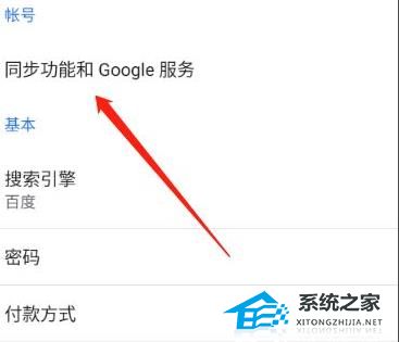 3、进入之后点击上面的“同步功能和Google服务”。