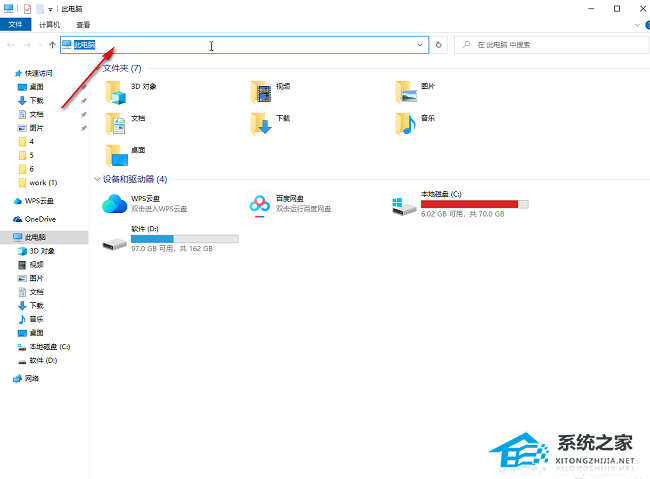 4、然后双击打开此电脑,将路径复制到上方地址栏中,并回车。