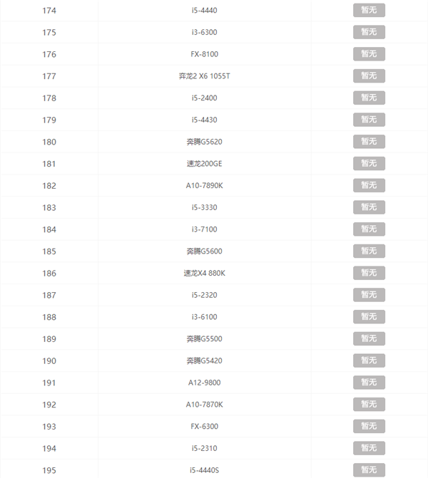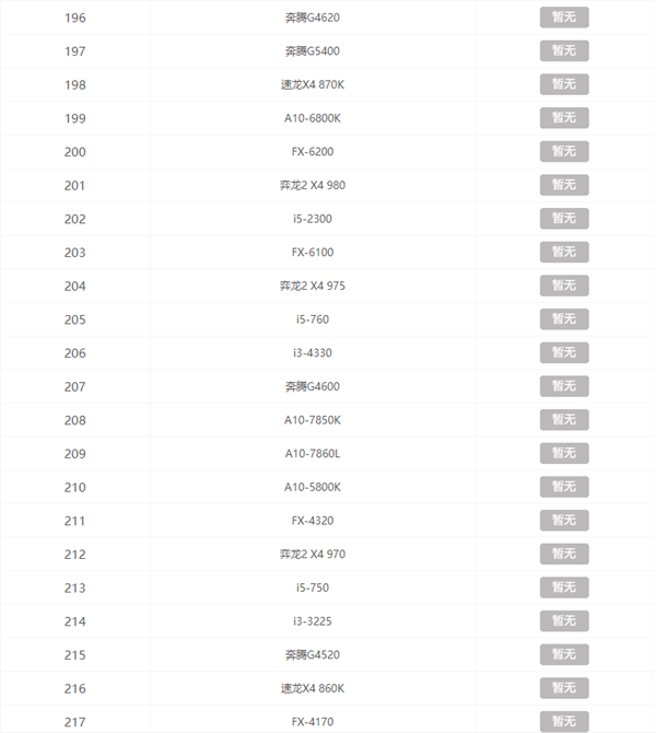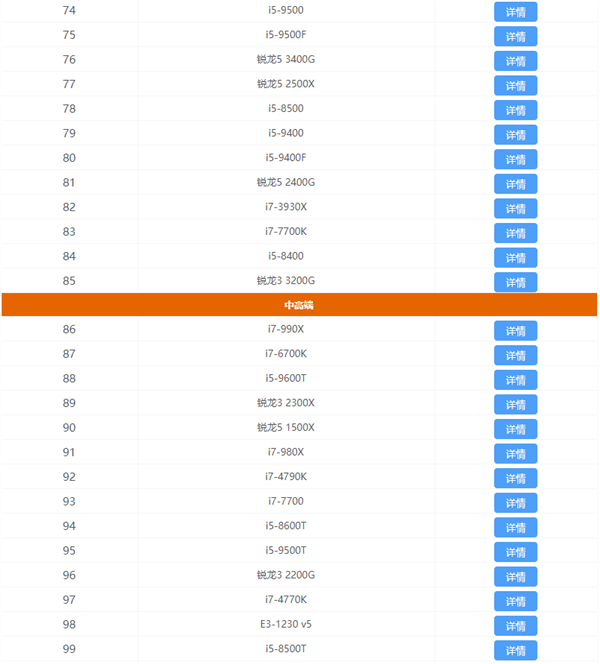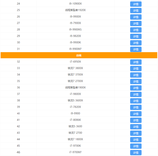 CPU天梯排行榜