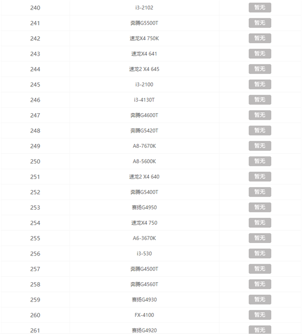 CPU天梯图2021年: