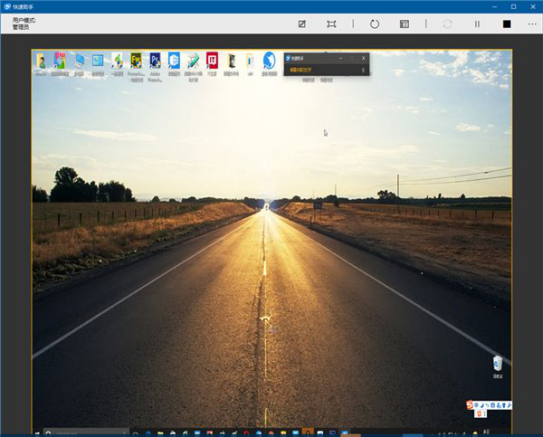 3、下面来看下快速助手连接对方后电脑的操作界面,可以看出非常简洁。受协助方可以通过顶部的工具条来暂停或停止桌面共享,而帮助方除了可以实时操控对方计算机系统外,还可以利用工具栏提供的功能对当前界面添加批注,也可以快速启动任务管理器。