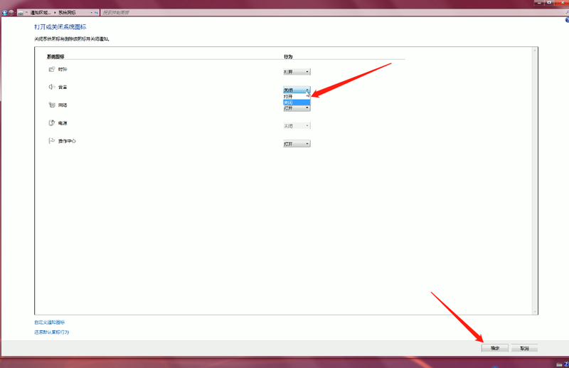 点击音量右侧下拉按钮,选择打开,最后依次点击确定即可。